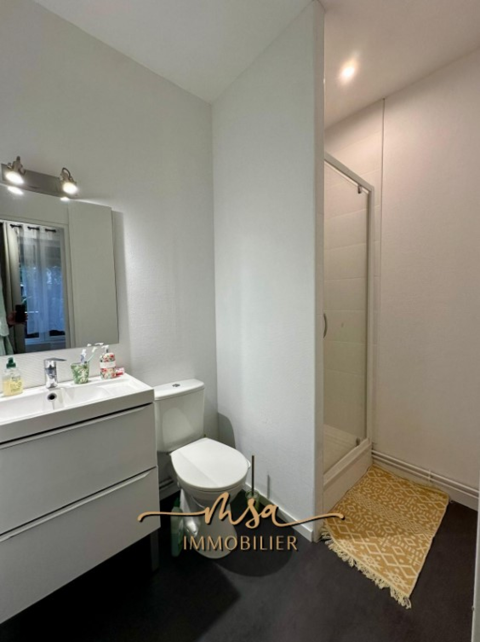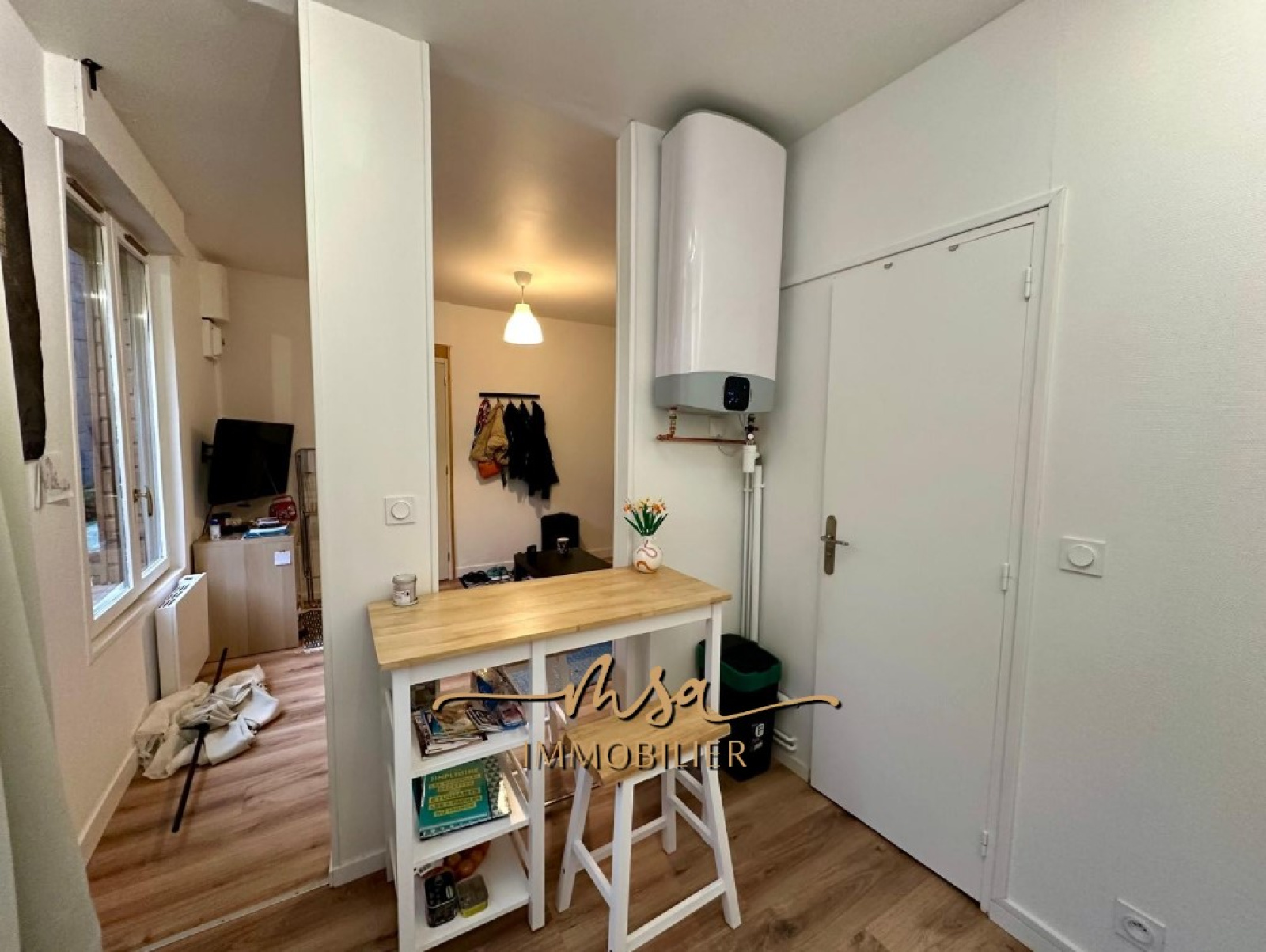Au fond d'une petite cour intérieure, STUDIO de 24m² en rez de chaussée, avec la jouissance d'une terrasse privative de 5m², comprenant : Pièce principale avec canapé lit, cuisine aménagée et équipée US, salle de douches privative avec WC.
