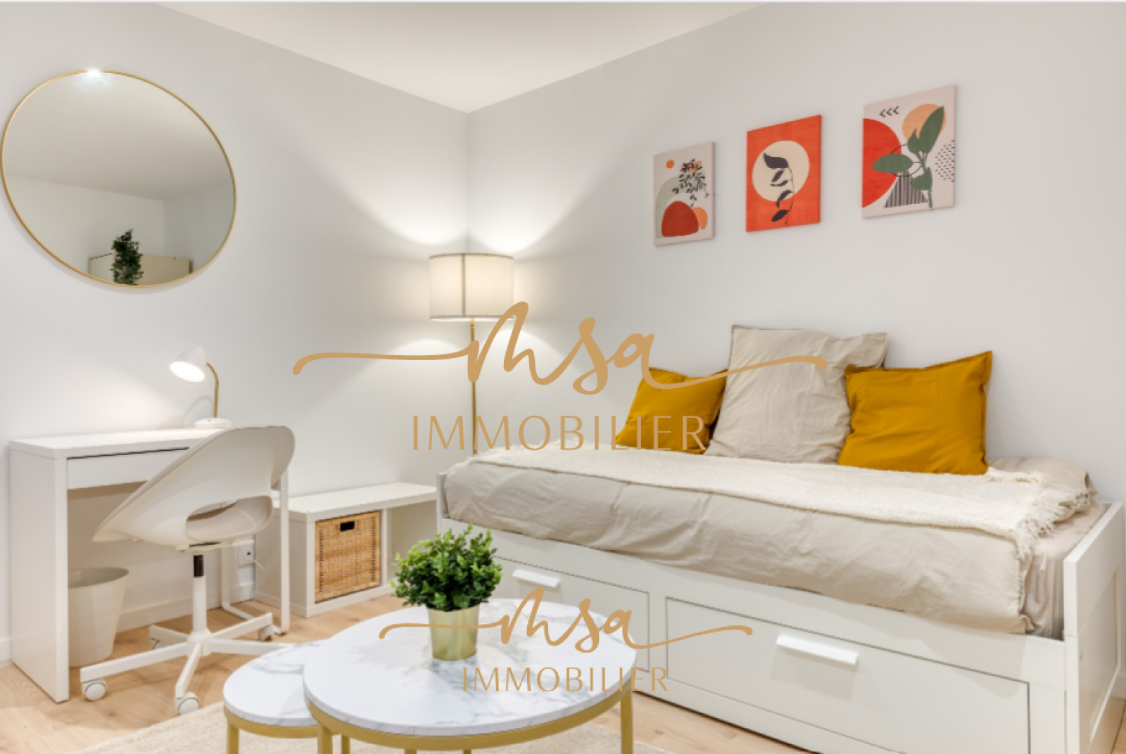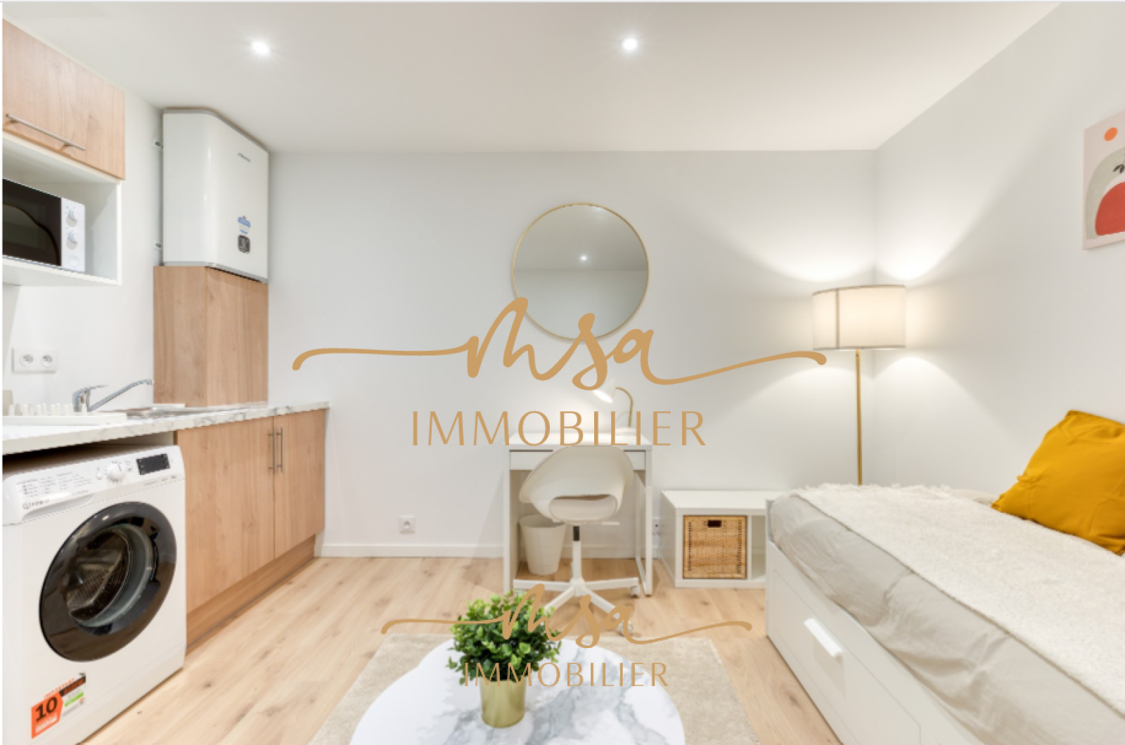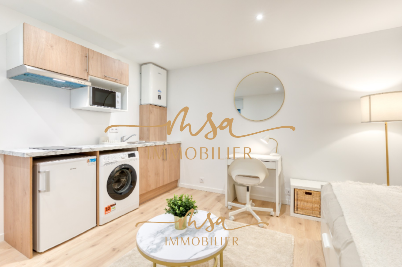 L'appartement est loué en meublé, l'intégralité du mobilier est neuf (Canapé lit, Bureau, mobilier...).