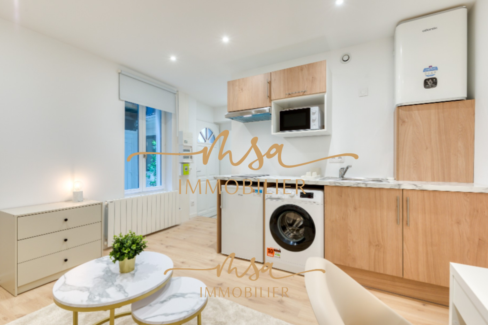 Au coeur d'un immeuble entièrement rénové en 2024, nous vous proposons ce charmant STUDIO de 18.50m², comprenant : Une terrasse extérieure privative donnant accès directement au salon avec cuisine aménagée et équipée (lave linge, plaques, hotte, micro onde, Frigo, etc...), placard, et une salle de douches avec WC indépendant. Prestations neuves (VMC, fenetres, Cumulus, Radiateur fluide...).