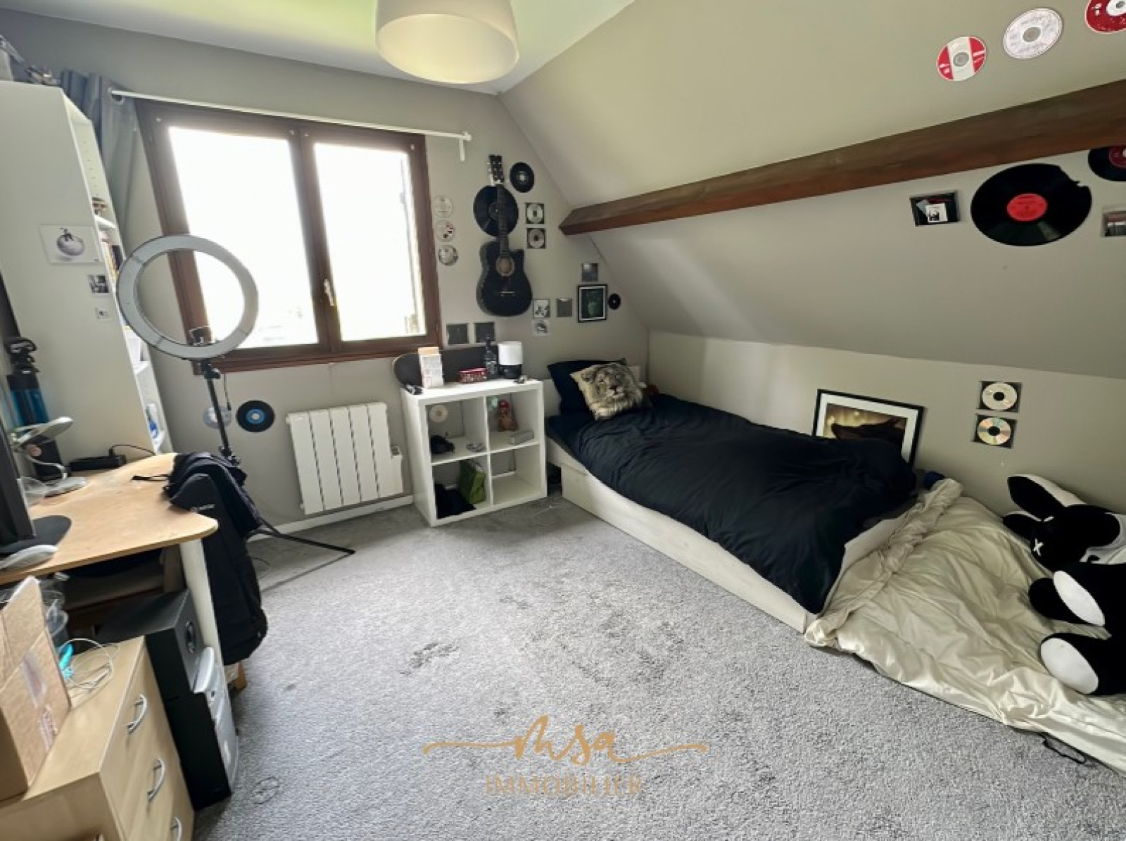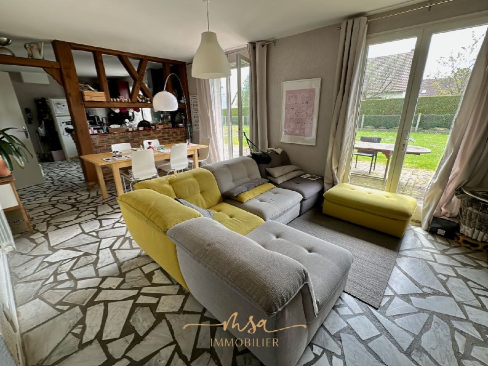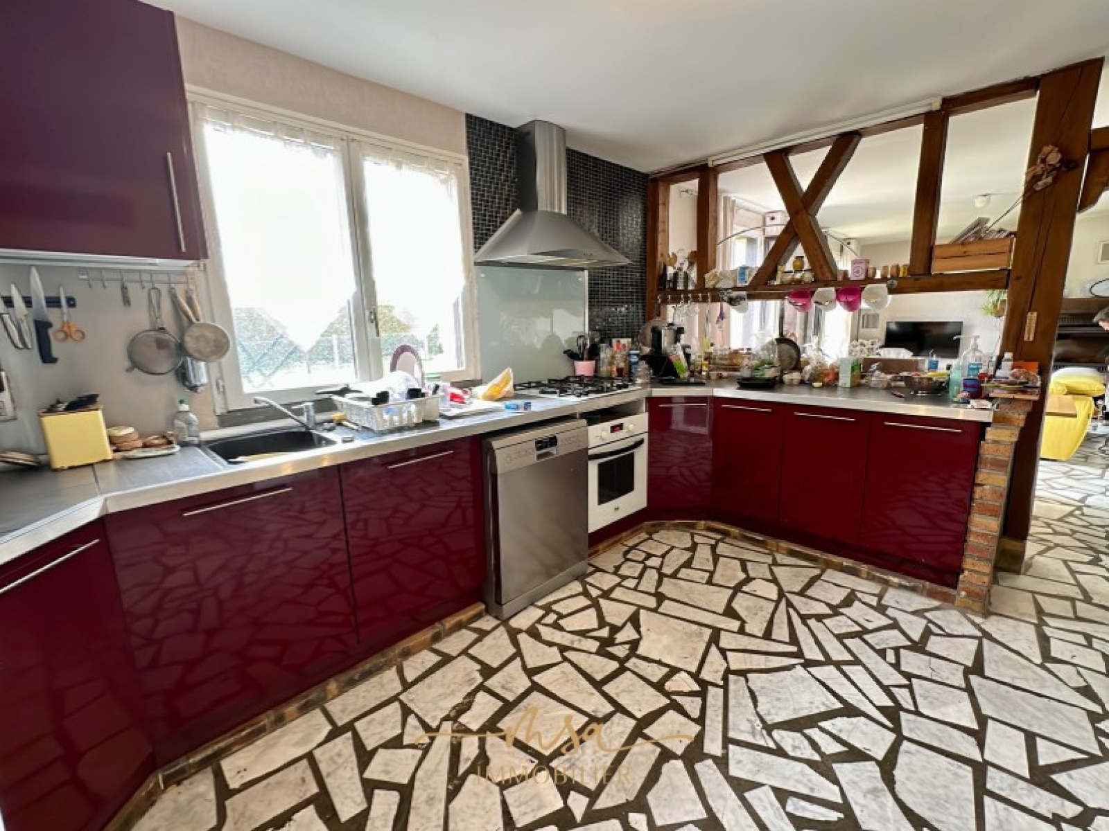 Boos (76520)A VENDRE par Mon Saint André Immobilier = Au coeur du village de Franquevillette, pavillon indépendant d'environ 120m², construit sur sous/sol, comprenant : Entrée, Séjour/salon avec cheminée d'environ 32m², donnant accès sur une Cuisine aménagée et équipée, 3 chambres et un bureau, Salle de bains, et salle de douches, 2 Wc.
