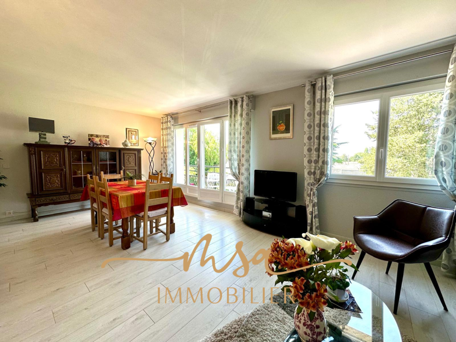 Séjour / salon lumineux exposé SUD, donnant accès à un balcon,